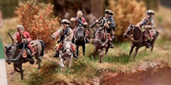 Die berittenen Figuren selbst kommen aus der War-Gaming Ecke und sind 3D-Drucke, die ich mir aus den 32 mm Figuren auf 1/72 skaliert habe.
