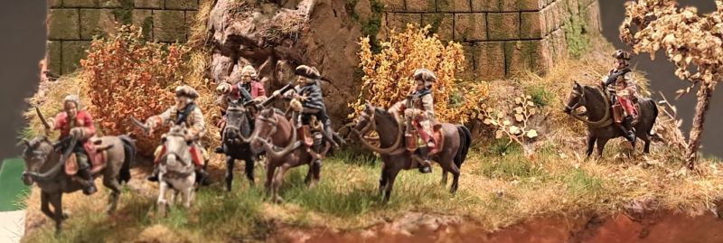 Die berittenen Figuren selbst kommen aus der War-Gaming Ecke und sind 3D-Drucke, die ich mir aus den 32 mm Figuren auf 1/72 skaliert habe.
